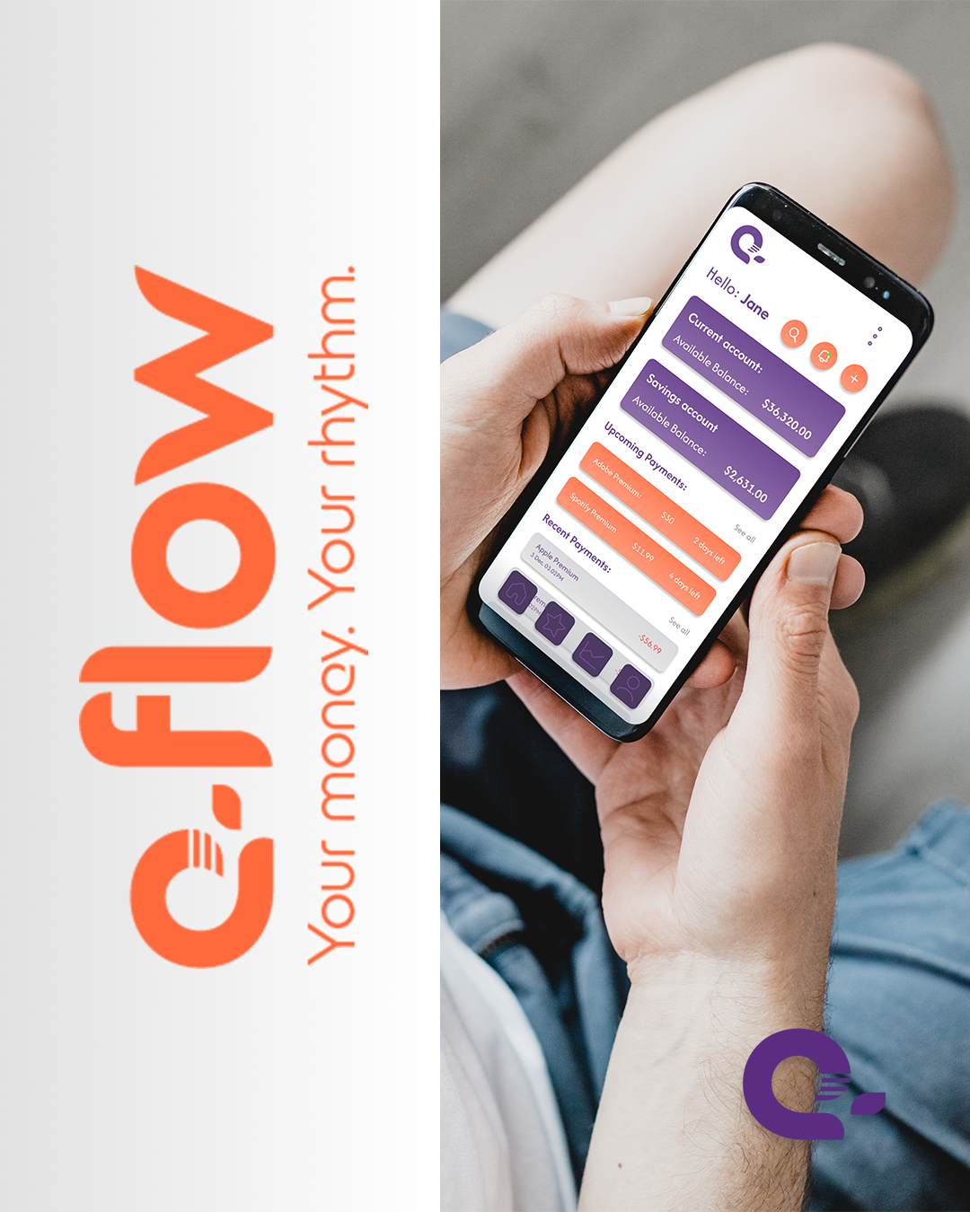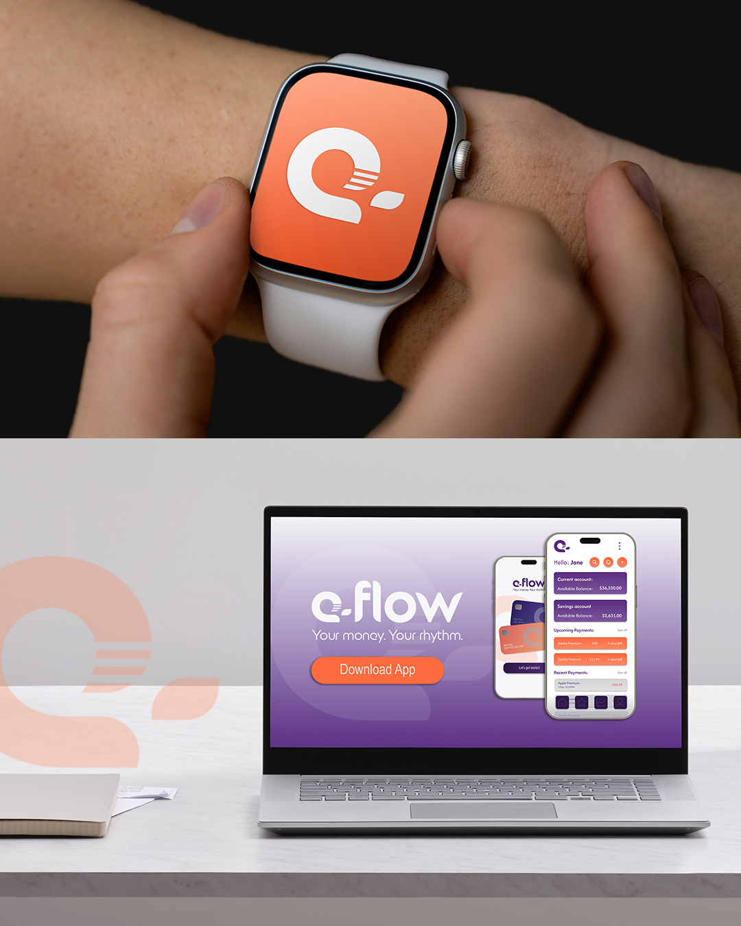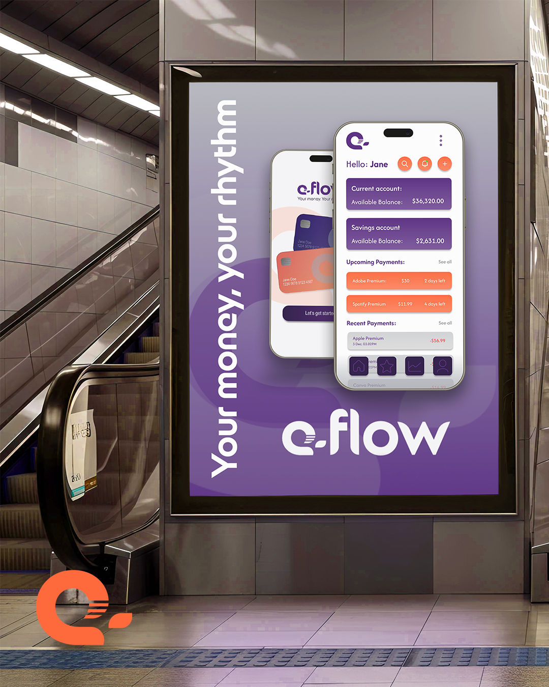 For e‑flow, I developed a sleek, modern, and clean digital‑banking experience built around clarity, speed, and intuitive interaction. The process began with defining the brand’s core values and visual language, exploring colour palettes, typography, and iconography that would resonate with young professionals seeking a frictionless way to manage their money. From there, I crafted a cohesive identity system and translated it into a streamlined UI, focusing on simple navigation, balanced spacing, and effortless user flows. Each screen was designed to reduce cognitive load and highlight the most important actions, resulting in a banking platform that feels calm, confident, and beautifully easy to use.