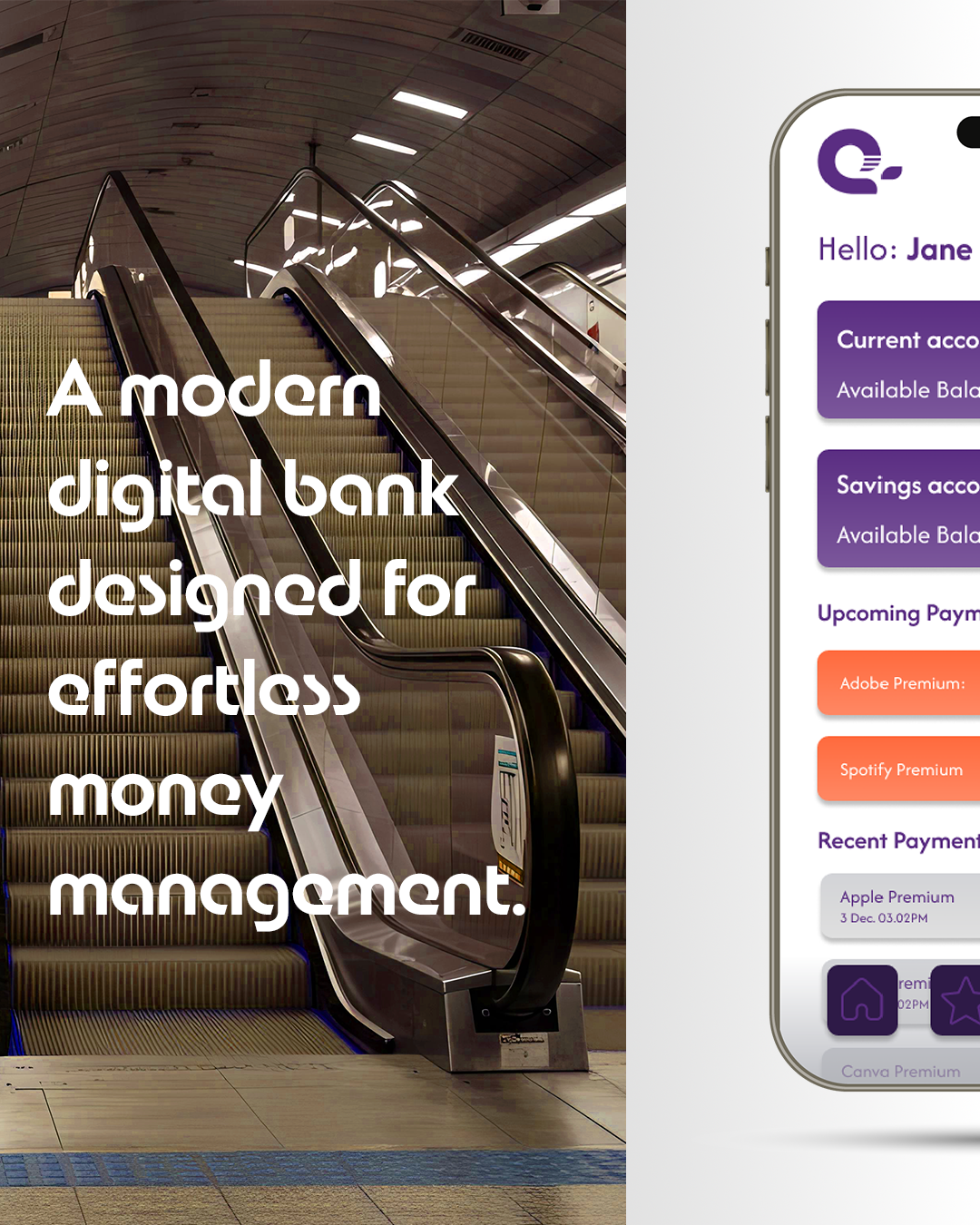 e‑flow is a conceptual design challenge where I explored how a modern, digital‑first banking experience could look and feel for young professionals. The goal was to create a sleek, clean, and intuitive interface that simplifies money management. I focused on mapping clear user flows, reducing friction in key tasks, and building a visual system that balances bold colour accents with generous white space. Through wireframes, UI exploration, and interaction design, this concept demonstrates how thoughtful UX and modern aesthetics can transform everyday banking into a calm, effortless experience
