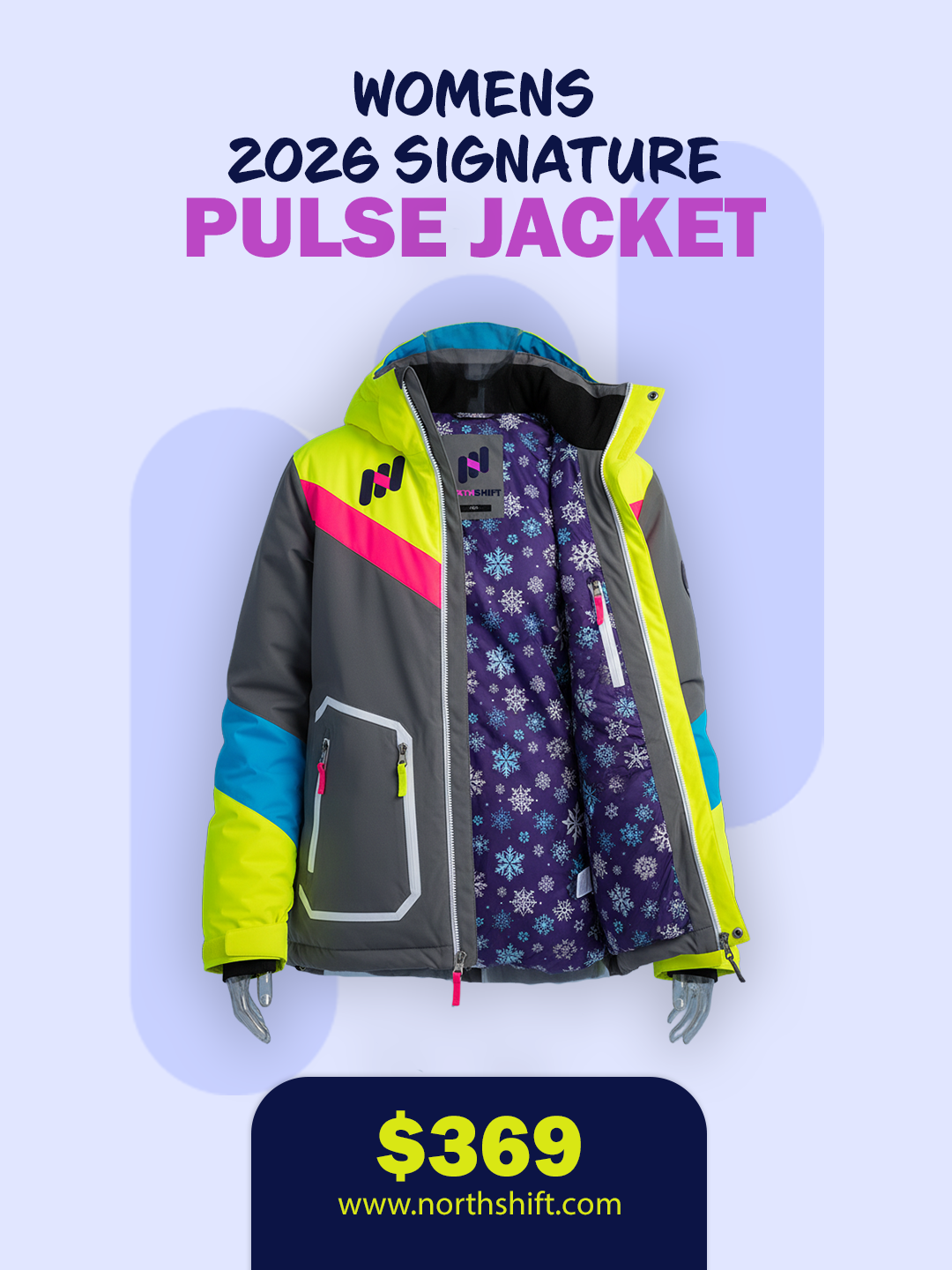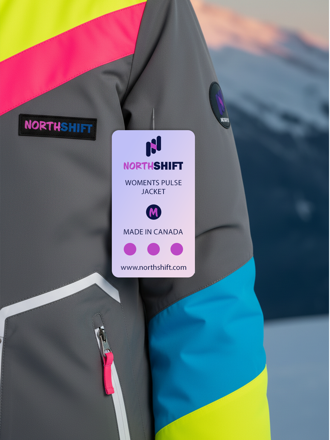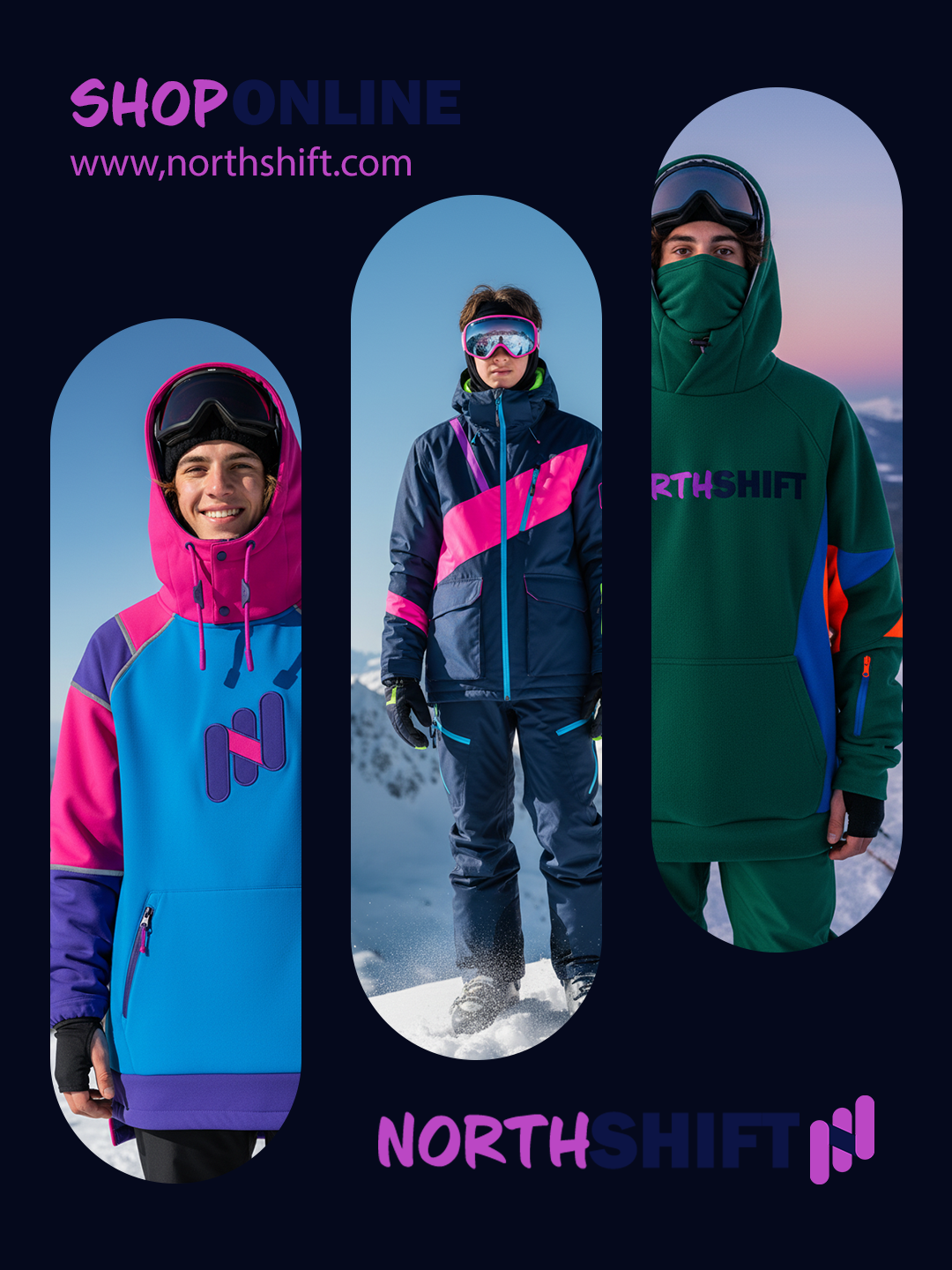 Designed for those who own the slopes with confidence, style, and comfort. Bold, vibrant, and unapologetic, Northshift jackets are made to turn heads and set trends. Each piece is crafted to stand out both on the mountain and in winter culture. Digital concepts brought to life through precision design in Adobe Photoshop.