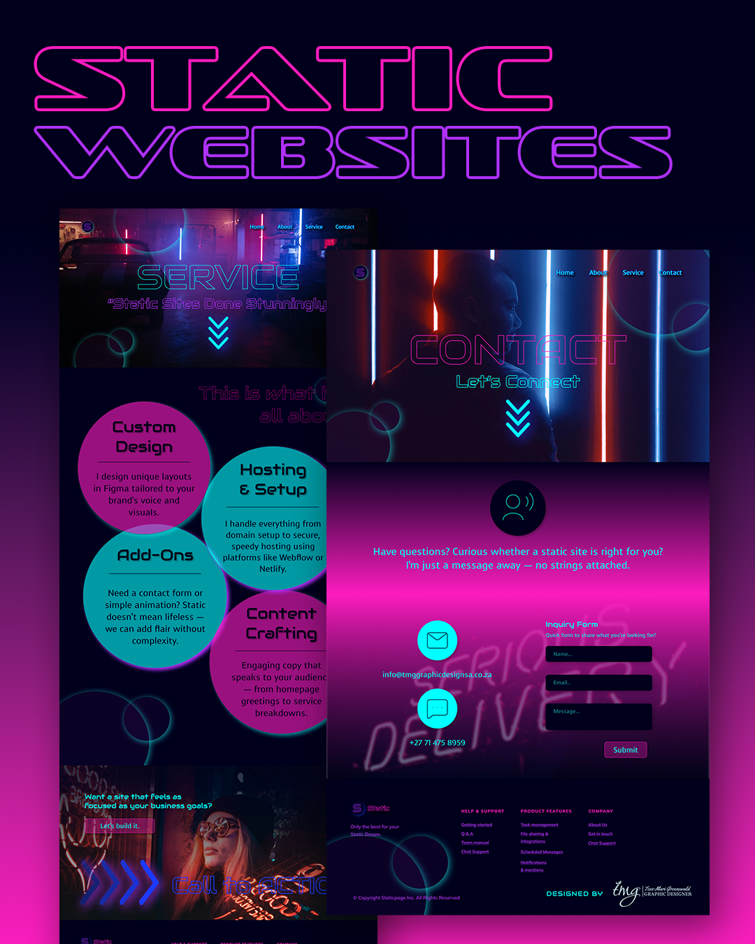 Crafting vibrant static websites with seamless precision—designed in Figma, brought to life in Webflow