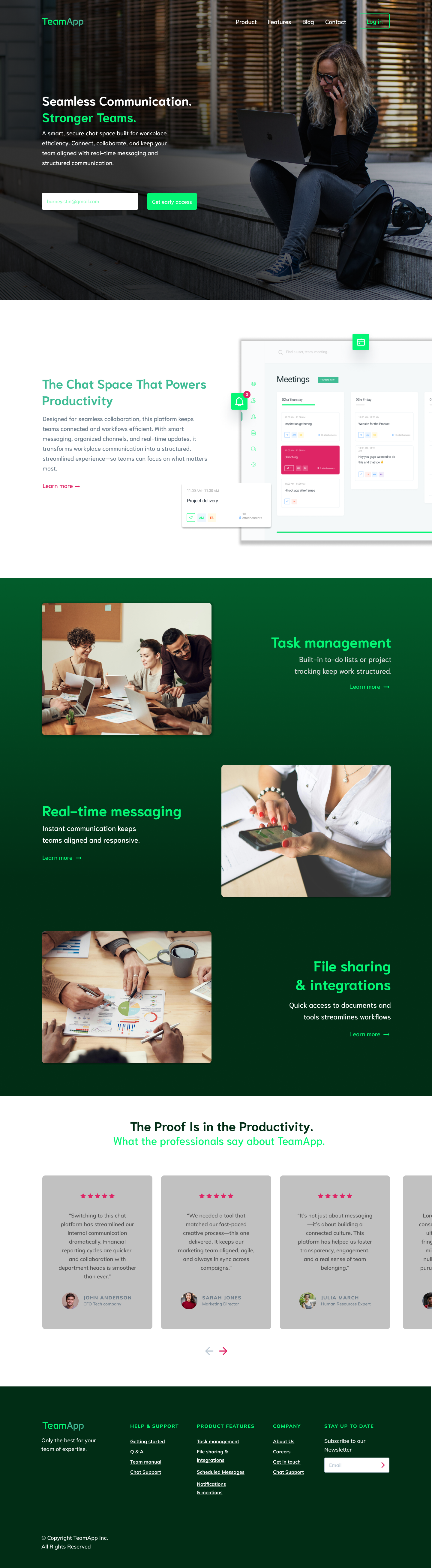 TeamApp is a smart, secure chat platform designed to transform workplace communication. Built for efficiency, it empowers teams to connect, collaborate, and stay aligned through real-time messaging and structured communication tools.